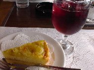 | 3階にあるワインレストランに入りました。主人はパスタ、私はぶどうのタルトを注文しました。白いぶどうが上に乗った珍しいタルトでした。そしてジュースはもちろん「ぶどうジュース」。濃い味でおいしかったです。 | |