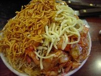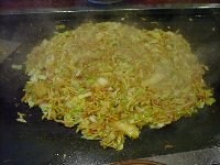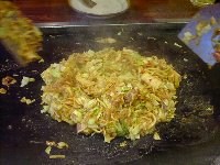 | 出来上がり! ベビースターラーメンは、おつゆを吸って、まるで焼きそばのようになりました。 この2つのもんじゃ焼きで、すっかりお腹がいっぱいになりました。 |