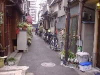 | 月島は、下町の雰囲気たっぷりの街で、こんな昔ながらの路地が並んでいます。築地の方から何かを運んできたのか、自転車の籠にお魚を入れたお兄さんが「リーン」と鳴らしながら横を走っていきます。 そして、観光に来る人が多い土地柄らしく何かわからなくて困っている人がいると、すぐに声をかけてくださいます。そんな雰囲気がとてもいいなぁと思いました。 |