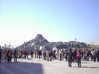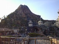 右の写真は入り口近くから見たプロメテウス火山を見たところです。その大きさにはびっくり!そしてちょうど入り口にあるホテルミラコスタの素敵な雰囲気に圧倒されました。この辺りをぐるりと撮った動画にリンクしています。ちょっと早く一周しすぎましたので、目が回らないようにお気をつけ下さい。(820KBです) |