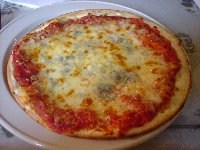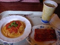 カウンターで買ってセルフサービスでテーブルまで運ぶスタイルで、どれも600円前後のお値段です。ポモドーロとラザニア、モツァレラとロックフォールのピザを食べました。 |