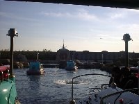 同じポートディスカバリーの中にある「アクアトピア」に乗ることにしました。ボートに乗って、水の中をくるくると周りながら動いていくアトラクションです。右の写真の右上に、小さく見えますが、この場所からは飛行機が離陸したり着陸したりする様子がとてもよく見えて、とてもいい眺めでした。