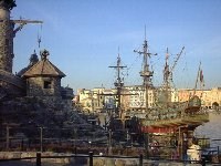 船のすぐ近くにある「フォートレス・エクスプロレーション」に入りました。大航海時代の冒険世界を探検できるということで、様々な趣向を凝らしたお部屋がありました。展望台の様な所から見た、本当の海と飛行機、そして重なって見えたディズニーシーの船の風景がとても印象的でした。