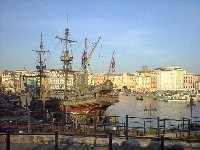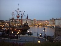 | 南ヨーロッパの港町をイメージした、メディテレーニアンハーバーでその景色を眺めていました。この地区で流れている、哀愁が漂っているような音楽が主人のお気に入りでした。左の写真は夕方が近付いた景色を撮った動画にリンクしています。(922KBです) |
