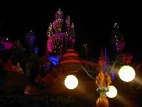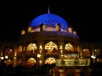 | 辺りが真っ暗でよく見えませんが、「シンドバッド・セブンヴォヤッジ」に入りました。待ち時間もなく、すぐに船に乗ることができました。これは船に乗りながら、アラビアンナイトの世界を表現した人形の動きを楽しむアトラクションです。小さな人形が凝った動きをしていて面白く感じましたが、実際のお話をしっかり覚えていなかったので、どんな話だったかしら?と思っているうちに終わってしまいました! |