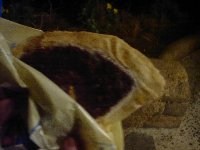 | すぐ近くにあるオープンセサミという屋台のお店で、バスティーラというアラビア風クレープを買いました。シナモンの風味が効いているクレープで、甘い濃厚なお味です。パンフレットに「エキゾティックな甘さ」とありましたが、本当にそんな感じ! |