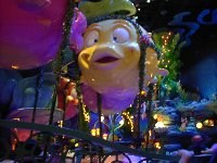 左の写真の竜宮城のような建物の中に、いくつかのアトラクションやプレイルームが入っています。まずは「待ち時間がありませ〜ん」というお姉さんの声に誘われて、わけもわからず「マーメイドラグーンシアター」に入りました。これはアリエルと仲間たちが繰り広げるミュージカルということでしたが、想像以上のスケールで驚きました。くるくると空中でまわっているアリエル役の女性がかわいらしいこと!そしてあの運動神経はすごい〜とおかしな感動をしているうちに、ミュージカルは終了しました。