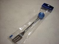 この2種類が、自分たちのために買ったお土産です。ジュースの缶を背もたれにして立っている小さなぬいぐるみと、フルーツスプーン2本!スプーンの頭には、入り口にあった地球儀のような青い球がついています。