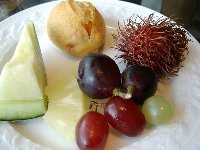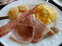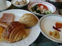 | 朝ご飯は、カフェトスカでのブッフェです。2階に下りていくと、ホテルの方が案内をして下さいました。そこで、カフェトスカではなく、隣のラウンジ、ソマーハウスはいかがですか?と提案されました。カフェトスカはテーブル席で子ども用のハイチェアーが用意されているのですが、ベルト等がなく、まだしっかりと座っていられない様な赤ちゃんと一緒では落ち着いて食べられないのではないかということでした。ソマーハウスはソファー席なので、お座りやたっちができる赤ちゃんならば、一緒に座ってご飯をいただくことができます。 ゆったりしたソファー席のこちらを選んで大正解!しゅんはつかまり立ちをして辺りの様子を眺めたり、時々私の顔を見たりしながら良い子にしていてくれました。久しぶりのホテルの朝ご飯はとてもおいしくて、のんびりとたくさんいただいてしまいました。特にパンは何種類も用意されていて、迷う程でした。オムレツは、その場で作って下さるものです。中の具は、パプリカ&玉ねぎ又は、じゃがいも&ベーコンから選ぶことができます。 |