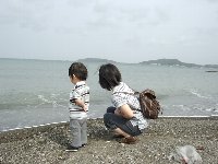 海岸を朝のお散歩 そして鴨川へ| 5月1日 朝起きてカーテンを開けると、少し雲は出ていましたが、何とかお天気はもちそうでした。ぐっすり眠ってすっかりお腹が空いた私たちは、早速食堂に向かいました。朝食はバイキング形式で、色々な物が並べられていました。しゅんは朝から牛乳をゴクゴク。飲み終えると、「お姉ちゃん、アイスクリーム、来る?」と言うので、主人と顔を見合わせてしまいました。聞き間違い?と思っていると、また「アイスクリーム、来る?」。昨日の夜、ファミレスで「お姉さん」がアイスクリームを運んできてくれたことがかなり印象的だったようです。残念〜。朝ご飯のバイキングには、アイスクリームありません。 右の写真は、私たちが泊まった館山シーサイドホテルです。このホテルの魅力は、目の前が海だということ!私たちは一階のお部屋だったのですが、窓を開けると芝生のお庭になっていて、その先が道路、そしてその先はもう海です。朝ご飯の後、昨日の夜と同じように道路を渡り、海岸までお散歩に行ってみました。 |