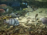 | 入り口を入ってすぐ、「エコ・アクアローム」という建物があります。水の一生というテーマで、川から海までの水のある場所に、どんな生物がいてどんな様子なのかということがわかりやすく展示されています。 海と一口に言っても、潮だまりや浅瀬、沖合や珊瑚礁など、全く違う波の動き方などが再現されていて、色んな表情があるんだなぁと思いました。 |