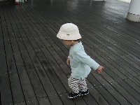 | デッキを走るしゅんです。こんな風に気持ちいい空気を吸いながら、思いっきり体を動かすことができて、しゅんも楽しかっただろうなと思いました。 お土産やさんには、千葉のお土産がたくさん売られていました。私もいくつか買いましたが、一番楽しみだったのは「コーチのサバカレー」。千葉と言えば「コーチ」、コーチと言えば「サバカレー」。こんな連想、かなりのドラマ好きの人にしか通じないかも・・・と心配しながらAさんへのお土産にしたのですが、Aさんは何とご存知でほっとしました。 |