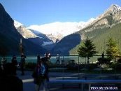 | 9月13日 自由行動の今日は、レイクルイーズ周辺で過ごすことにしました。JTBの係員さんがおっしゃっていた通り、正面の山に朝日が当たって朝のレイクルイーズはとてもきれいでした。少し散歩した後、ホテルから向かって右側にあるハイキングコースに行くことにしました。このハイキングコースはレイクアグネスへ続いています。木々の間を登っていくと、所々でレイクルイーズが見えます。近くで見るよりずっと深い青色の湖です。 |