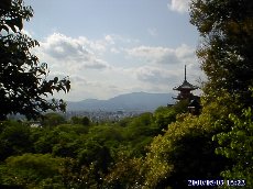 | 清水の舞台です。新緑がとてもきれいです。ここからは京都タワーなど、市街地がよく見えました。 |