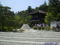 | 回遊式庭園をぐるりとまわり、また銀閣の近くに来ました。ここが写真をきれいにとれる場所の様で、多くの人がとっていました。ここも新緑がきれいでしたが、ぜひ秋などにも来てみたいなぁと思いました。 |