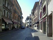 | 写真左はローマ博物館です。ニヨンはジュリアスシーザーがヨーロッパ遠征の際に築いた街ということで、ローマ時代の遺跡や出土品があるそうです。が、残念ながらお昼休み中で中に入ることはできませんでした。写真右は駅に近い街並みです。湖沿いとはまた違った趣がありました。 |