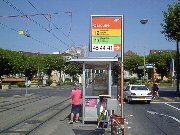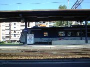 | 駅までゆっくり歩き、ジュネーブまで鉄道で帰ることにしました。何となく「世界の車窓から」みたいだねぇ・・・と言いながら、あの歌を口ずさんでいると、目の前を通り過ぎていくジュネーブ行きの電車が!ホームを間違えていたのでした。 写真右は駅前の電話やさんに展示してあった携帯電話です。パナソニックの携帯で、日本で出ているのと同じ様な形だったので、ついつい写真にとってしまいました。 |