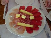 | ジュネーブ駅からバスで旧市街まで行き、「シャレースイス」というお店でフォンデュを食べました。このお店では、フランス語しか話せない店員さんと、つたない英語の私たちとで、会話するのがとても大変でした。フォンデュも一人前だけ注文したら、本当にその量で大丈夫?と心配されたので、じゃあ、二人前ということで注文したのが右上のフォンデュです。白ワインと干し肉とフォンデュはとっても「トラディッショナル」だよ、とほめてもらいましたが、この昼食のおかげで夜ご飯も食べずに朝まで寝てしまうことになるとは・・・。 |