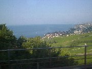 | 電車から見た風景です。昨日は湖側から見た風景を、電車側から見ることができました。葡萄畑がひろがっています。 |
