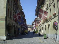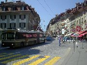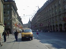 | ベルンに到着しました。左上は駅構内にあった有料トイレです。他にも同じ様な有料トイレがありましたが、どこもとても清潔でした。入る時に1.5フランかかります。 ベルンの街並みは、本やテレビで見たとおりのとても趣のある風景でした。どこを見ても絵になる気がしました。 |