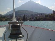 | ベルンを14時頃の電車で出発し、トゥーンで下りました。トゥーンから船に乗り、シュピーツまで行きました。船の中では、写真をとって下さったおじさまと折り紙交流をしたり、外の景色を楽しんだりして過ごしました。 |