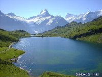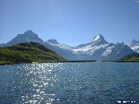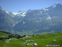 | 8月22日 今日も朝からとてもいいお天気です。アイガーが少しずつ明るくなっていくのをベランダから眺めました。 さわやかな朝の風景とは対照的に、私たちの動きはとてもぎこちなくなっていました。それは・・・ひどい筋肉痛が原因!昨日のハイキングはかなりしんどいものだったので、二人とも歩くのが精一杯といった感じでした。でもこの感覚、いつか体験したことがあるような気がする、と考えてみると、高校の時の部活の合宿だ〜と思い出しました。1日で体のあちこちがたまらなく痛くなって、それでも翌日もまたハードに練習をするというあの合宿の感覚でした。そういえば会社の後輩Oさんに、「ゆっこさんのご夫婦は、毎年夏休みに山登りの合宿をされるんですか?」と言われて慌てて「ハイキングだよ」と訂正したことがありましたが、今年はまさしく合宿かも・・・と思いました。 朝ご飯を食べて8時過ぎに出発しました。今日はまずグリンデルワルトからフィルストまでのゴンドラに乗り、バッハアルプゼーまで歩きます。 |