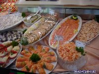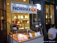 バーンホフ通りのお店をあちこち覗きながら歩きました。セバスター・ゆきさんに教えていただいた「teuscher」でお土産用のチョコレートをたくさん買いました。店内には様々なチョコレートが並んでいて、何と日本の雑誌に紹介された記事もありました。ここで買ったカカオが60パーセント入った板チョコが本当においしくて、もっと買えば良かった〜と家に帰って思いました。 左はえび料理がたくさん並んでいたお店です。こういうお店でテイクアウトして、公園でご飯を食べても楽しそうだなぁと思いました。 |