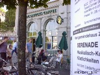 マクドナルドの看板に漢字を発見!ちょうど「アジアウィーク」だったようです。メニューは何かしら?と見てみると、アジアバーガーや海老の天ぷらの様な物、それから春巻きでした。どんなお味なんでしょう? リマト川沿いのスターバックスには、外でお茶している人がたくさんいました。 |