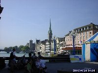 8月24日 今日で楽しかったスイス旅行もお終いです。また雲一つないいいお天気で、朝から空の色が本当にきれいでした。去年もおいしい〜と思ったこのホテルのクロワッサンなどをいただきながら、外を眺めました。通勤中のサラリーマンさんたちが、新聞を片手に市電に乗っていきました。 食事が終わってお散歩に出かけました。 |